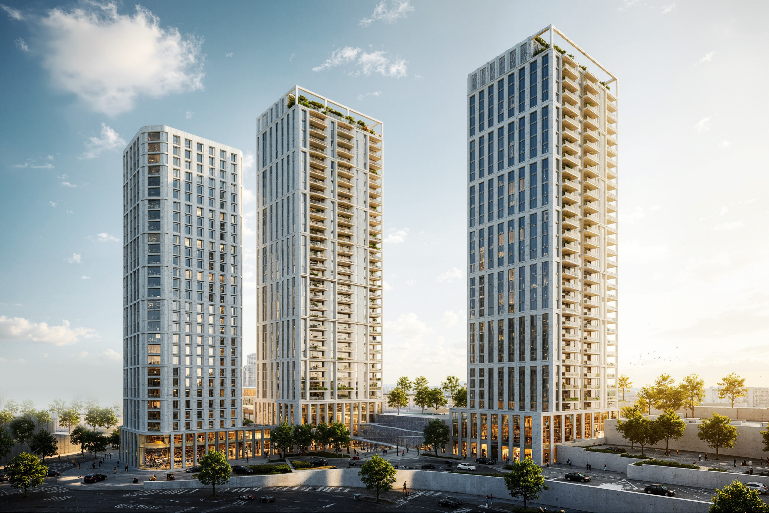 תכנית פינוי בינוי המשדרגת את השכונה קרית מנחם בירושלים, ומשלבת תכנון מתקדם עם סביבת מגורים איכותית. החברה תקים 3 מגדלי מגורים בני 32 קומות הכוללים 575 יחידות דיור חדשות – כשמתוכן כ-116 דירות קטנות ושטחי מסחר בחזיתות הבניינים. בנוסף יחוברו הרחובות קולומביה ואיסלנד באמצעות מעלית ומדרגות ציבוריות.